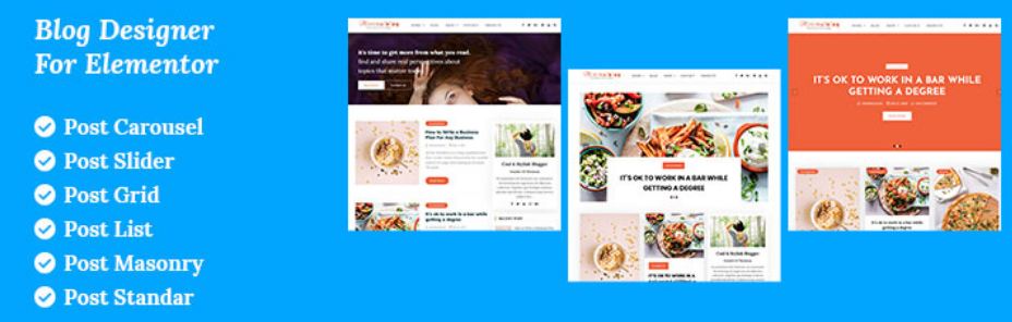 Blog Designer for Elementor is another good option for you. The plugin is designed for people who want to design or build a responsive blog page for their website. In addition, it includes a variety of important layouts such as Grid, Standard, and List.